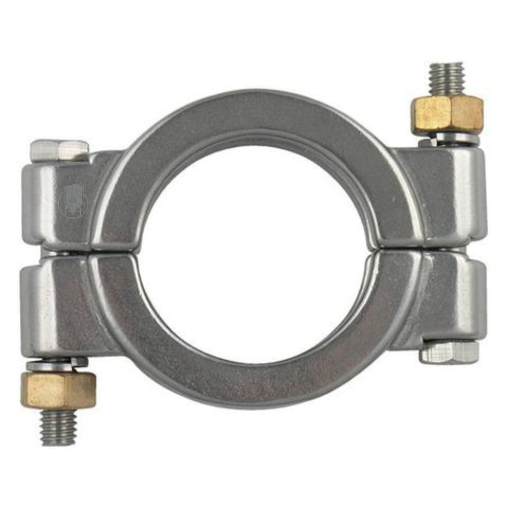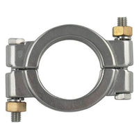 13MHP High-Pressure Clamps are constructed from 304 stainless steel and intended for use with sanitary Tri-Clamp fitting connections. The bolted design of this sanitary clamp allows it to withstand twice the pressure of a like-sized hinge clamp. Furnished with 304 stainless steel bolts/lock washers and either bronze (1" thru 8") or brass (1/2", 3/4", 10" & 12") hex nuts. High pressure clamps are often a necessity where temperature fluctuations occur and PTFE gaskets are installed.