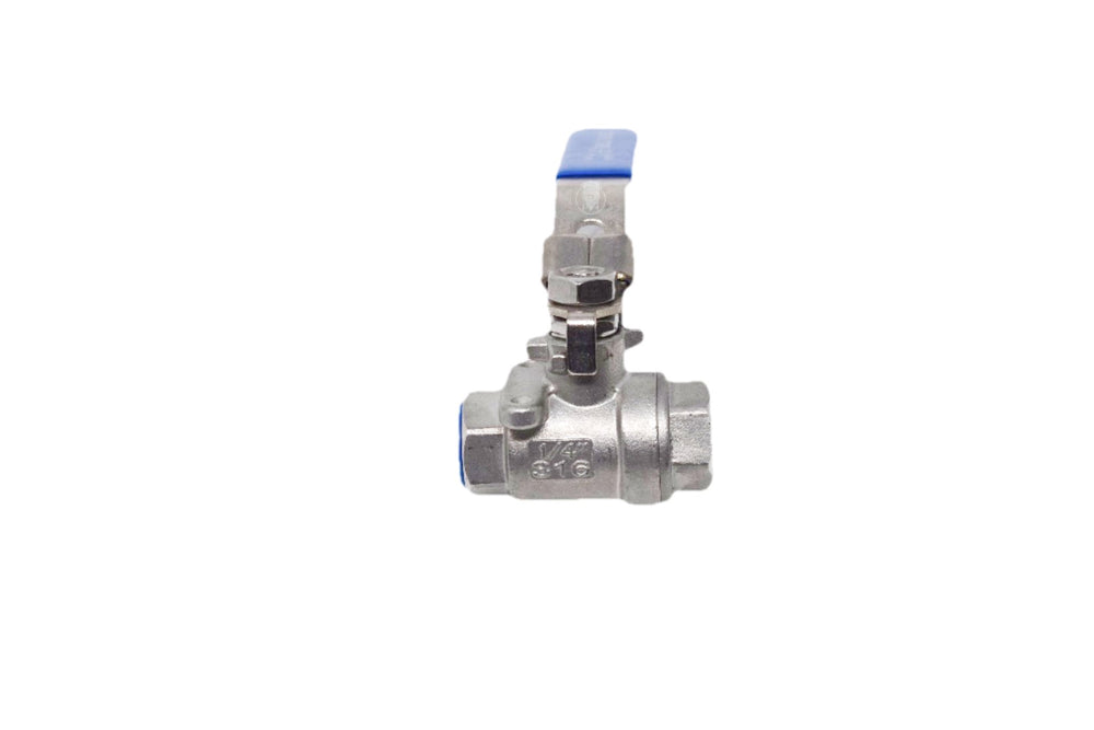 Our 1 piece BSP ball valves are manufactured from grade 316 stainless steel, have PTFE seats and are rated to 1000 PSI. As standard, the valve has a lockable handle.