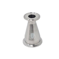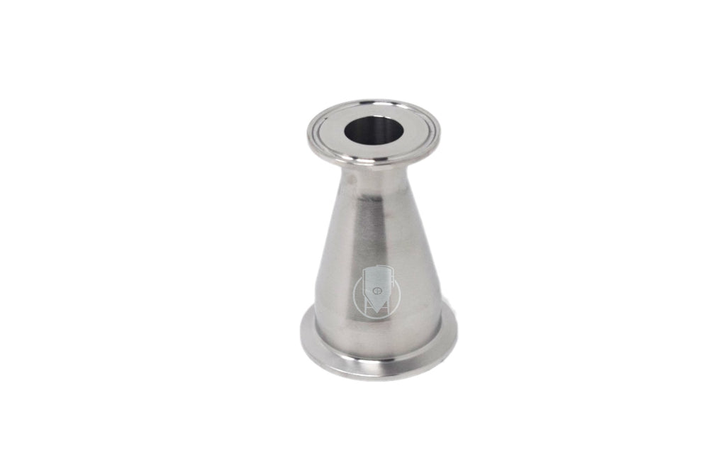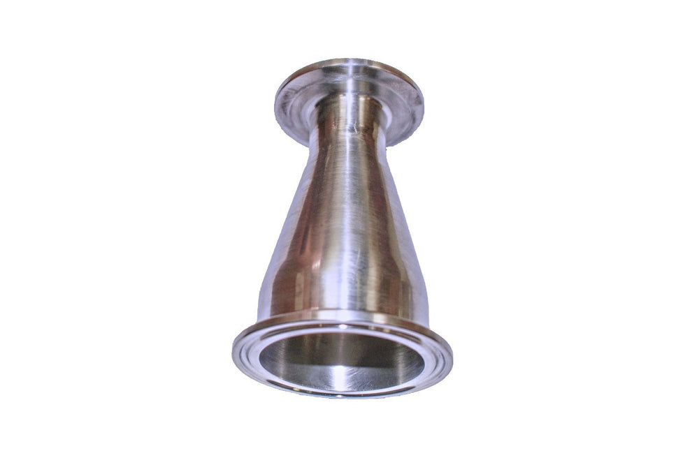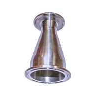 Grade 316 stainless steel concentric reducer with tri-clamp connection for transitions in pipe or hose sizes. Both ends are tri-clamp reduced sizes