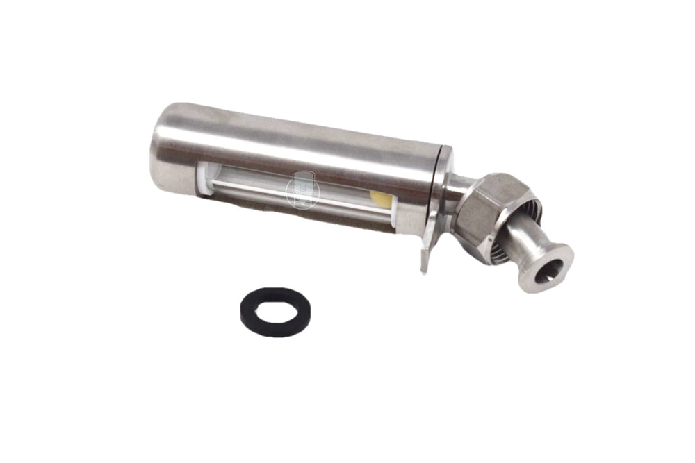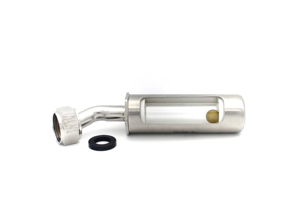 New design FOB with stainless steel beer stop and sight glass, keg coupler is not included. Allows brewer to multi-task while filling beer kegs in the brewery. Automatically stops when the keg is full. No more losses through fob overflowing from your kegs. Designed to fit 5/8" BSP coupling.