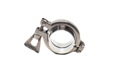 DIN round nuts fit over the threads of the welding male, and secure the welding liner and gasket inside the welding male. A DIN wrench is used to tighten the nut by hooking the wrench into the round nut grooves and turning in a clockwise direction.