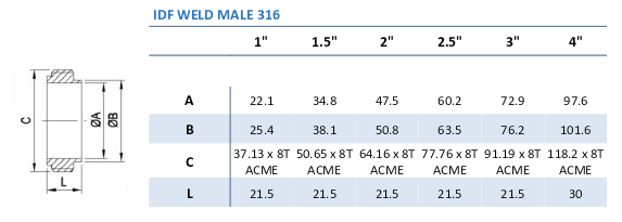 Grade 316 stainless steel IDF male