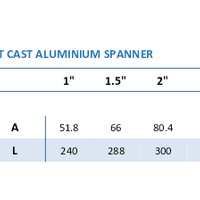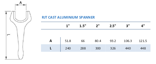 Aluminium RJT spanners available from sizes 1" to 4". Cast aluminium for ergonomic lightweight design while being durable enough to withstand heavy use.
