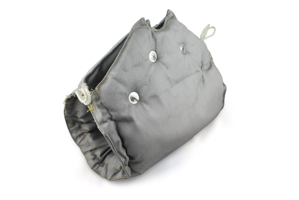Heavy density insulation jackets are fabricated from silicone coated glass fibre cloth encapsulating 50mm thick 90kg rock felt insulation. Fixings are Velcro flaps and pull cords.