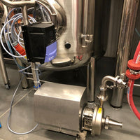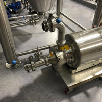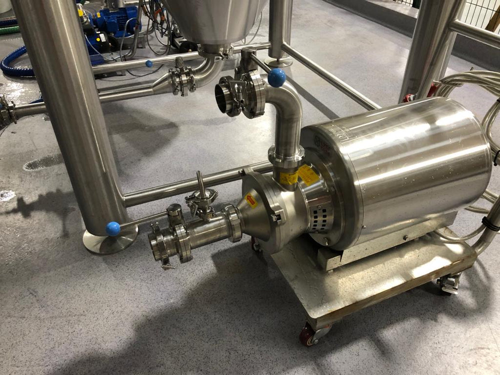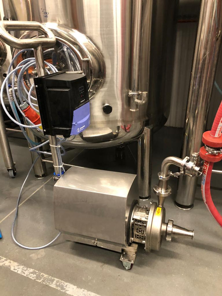 Hygienic centrifugal pump in stainless steel complete with variable speed drive (Inverter) and motor cover.