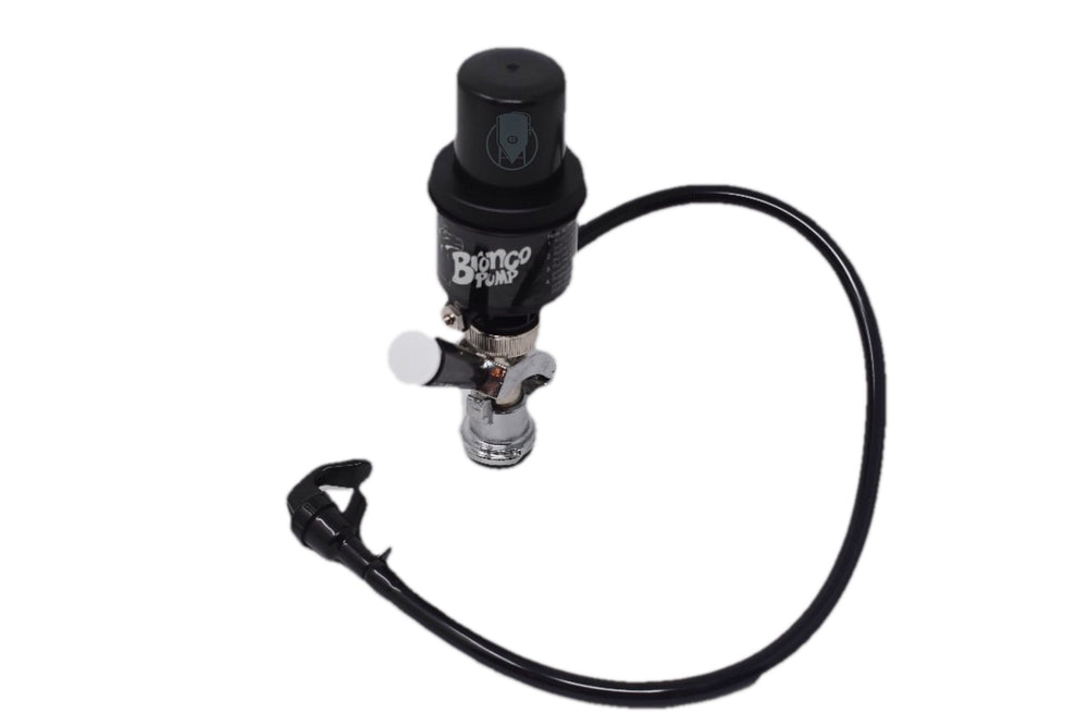 A portable party pump system for single valve kegs. This convenient pump system is compact in size and comes complete with a sturdy metal tapping base, high volume air pump, beer tubing and faucet.