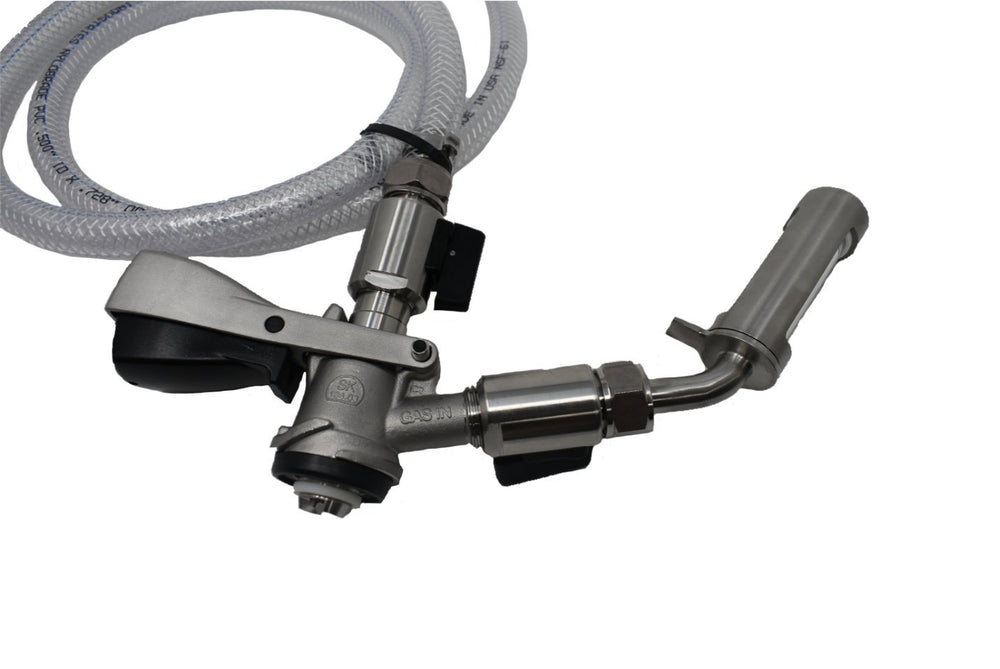 Manual coupler filling head with automatic beer stop when keg is full, no wasted beer. New design with stainless steel beer stop and sight glass.