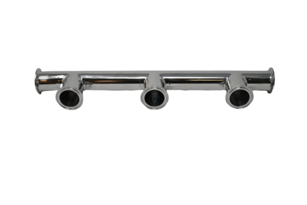 This 3 port keg filling manifold gives the brewer (or winemaker) the ability to fill 3 kegs per fill cycle. You can also use it for DIY keg cleaning. Using a separate keg filling manifold will increase worker and equipment productivity as well since the operator can fill and clean at the same time and process more kegs every hour.