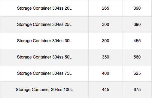Storage Containers are made from 304 stainless steel. They are ideal for working with both powders and liquids. The containers come with a simple drop-on lid. The lid can be secured with toggle clamps and O-ring seals, these are optional extras. We recommend that four toggle clamps are used.