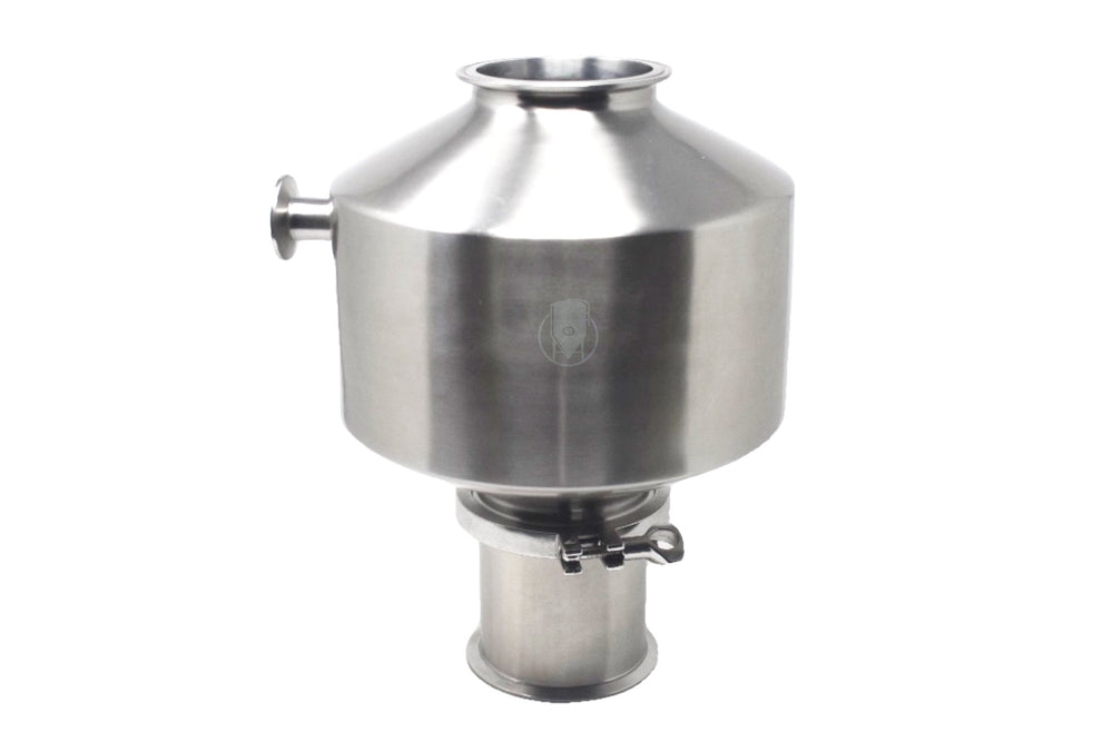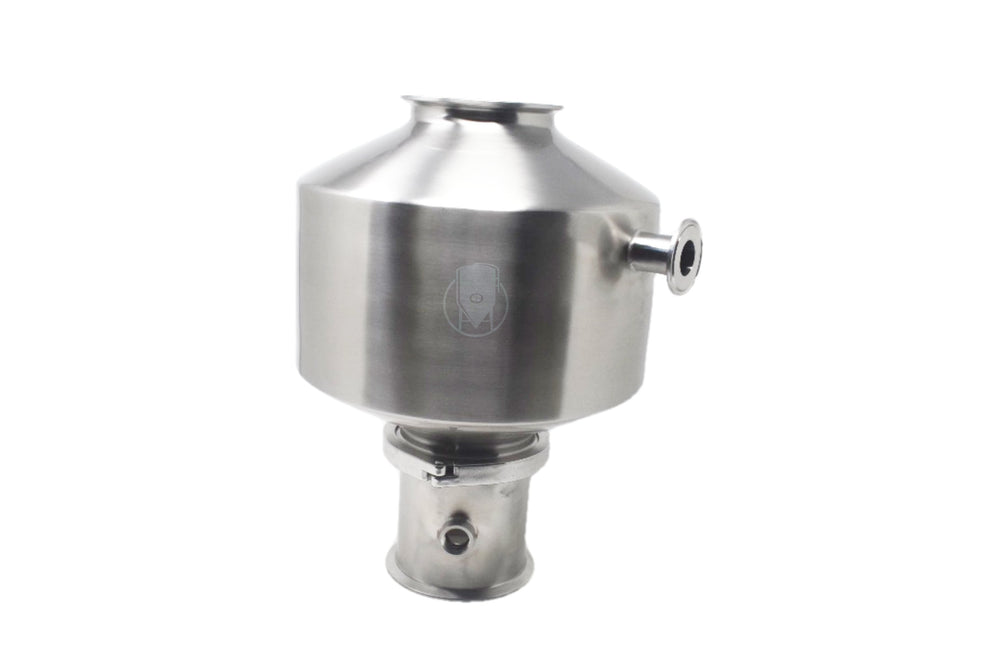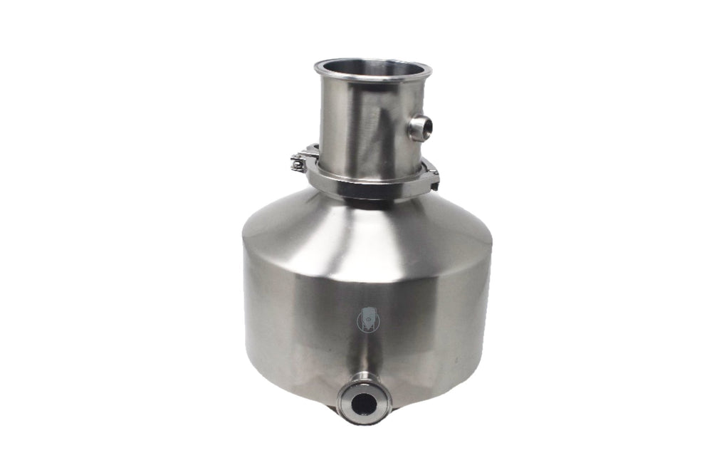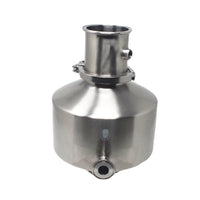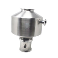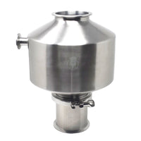 4" tri-clamp connection on grain feed on top and vessel connection on bottom.
