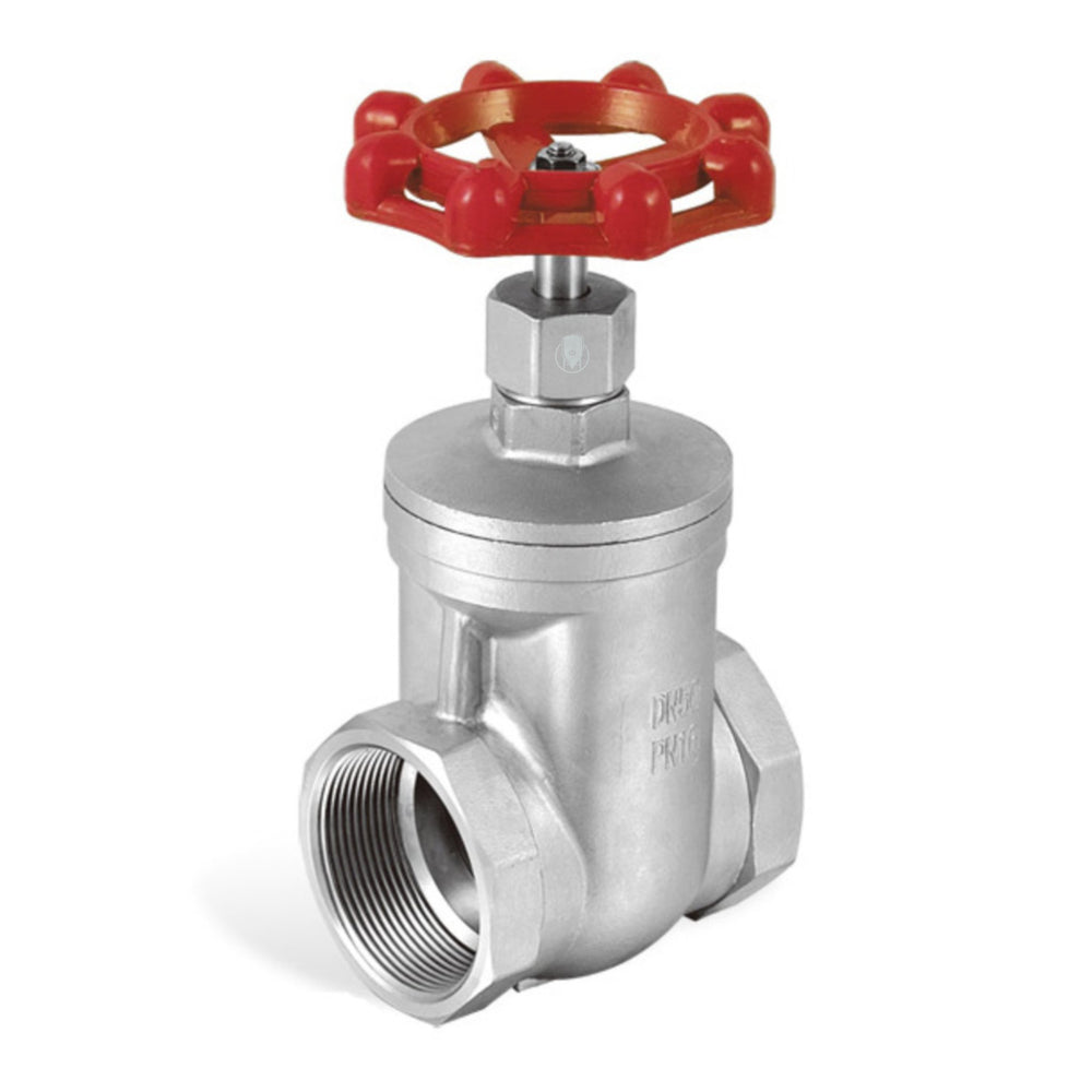 Grade 316 stainless steel body with PTFE seals and screwed BSP end connections. Temperature range: -20°C to 180°C with a pressure rating of 600 PSI. Handwheel operated.